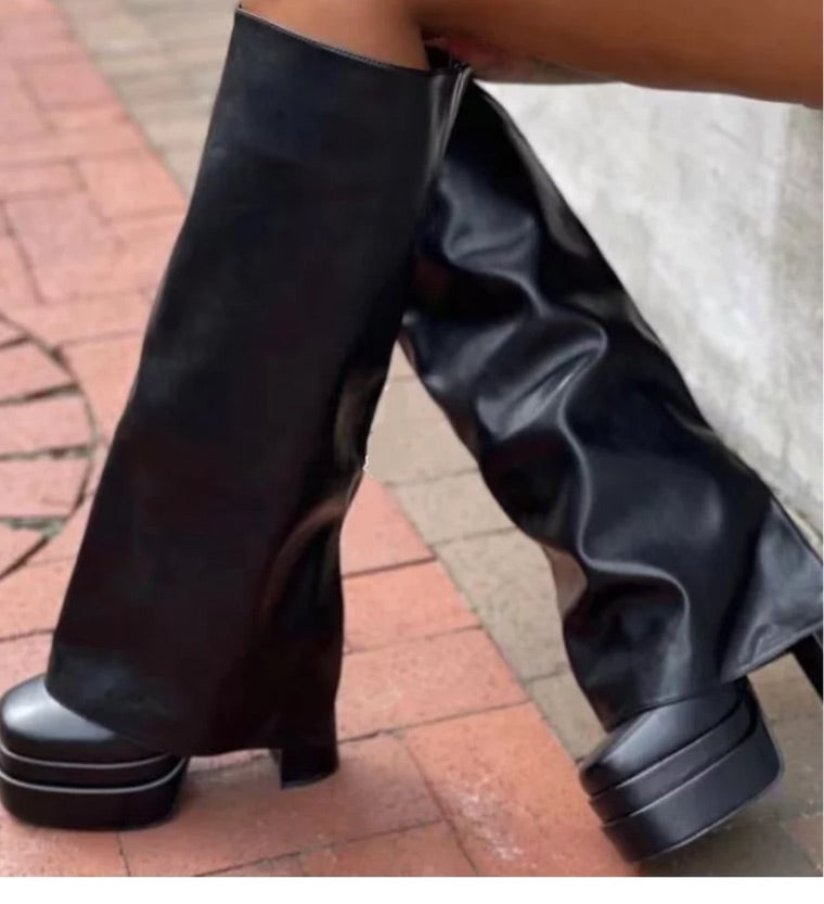 Knee high Calf boots that pairs perfect with any fit true to size if feet are wide possibly go a size up .